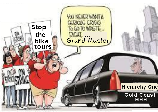 The Gold Coast Hash House Harriers are in turmoil!! Stand in On Secs strike wanting equal touring rights that the Hash Grand master has given to his Hierarchy mates.